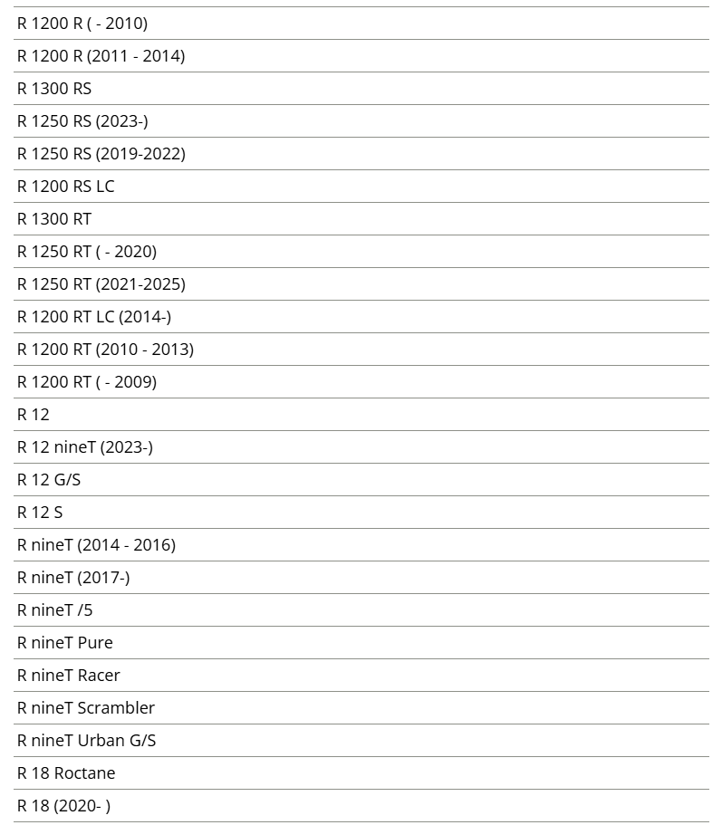 R 12, R 12 G/S, R 12 S, R 12 9T, R 18, R 18 클래식, R 18 록테인, R 18 트랜스컨티넨탈, R 850 C,